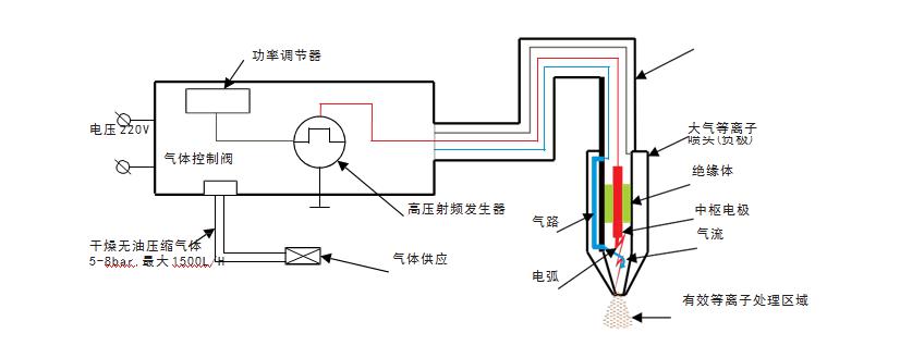 1、氣體激發(fā):在常壓環(huán)境下通過電暈放電、輝光放電或大氣壓微波等技術(shù)激發(fā)氣體形成等離子體。